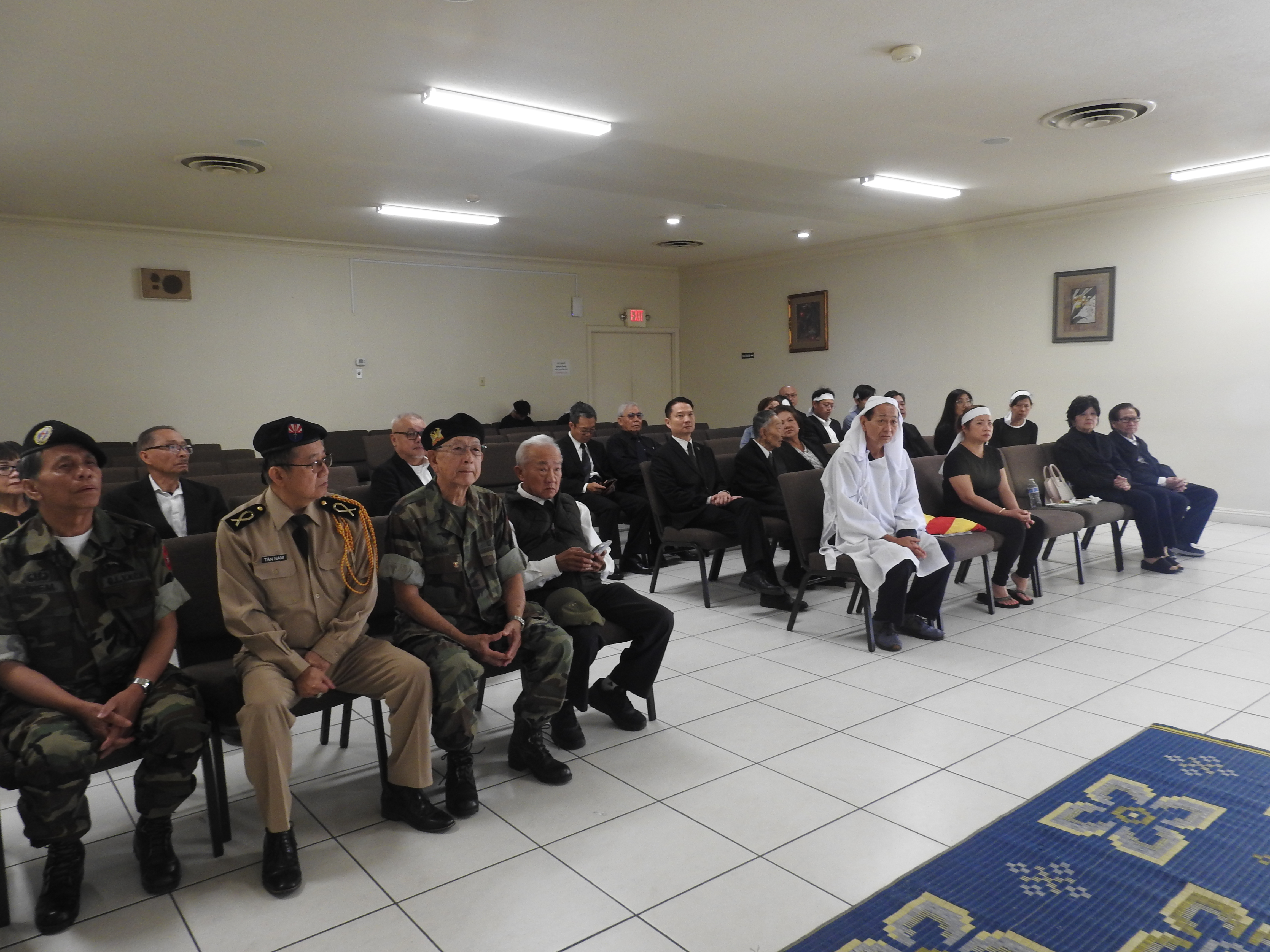 Hội Ái Hữu Đơn Vị 101, kính cẩn phủ lá Quốc Kỳ VNCH lên quan tài của cố trung