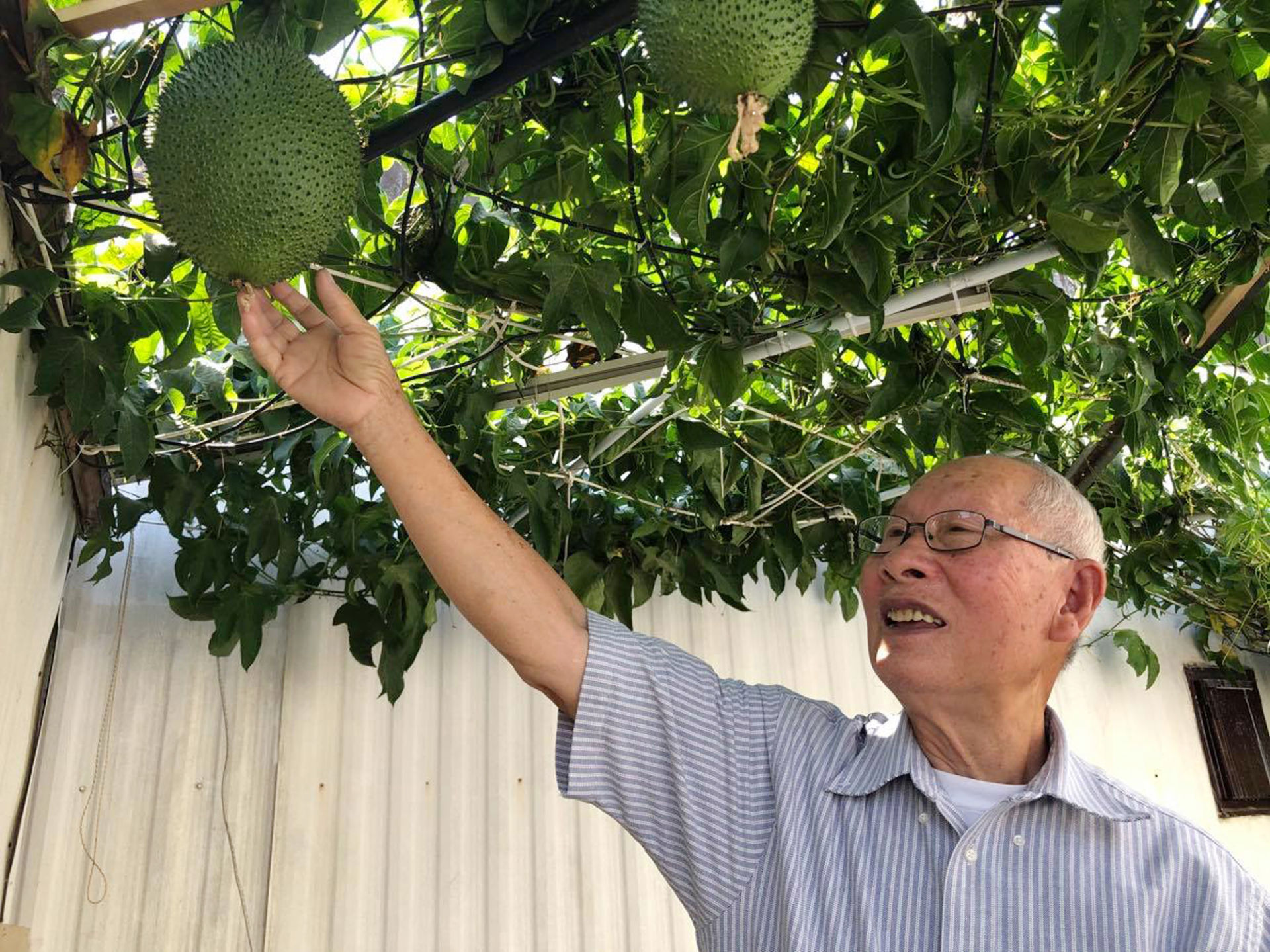 trồng rau, lấy ống đạn đựng nước tiểu tưới rau, sáng sớm có anh đi